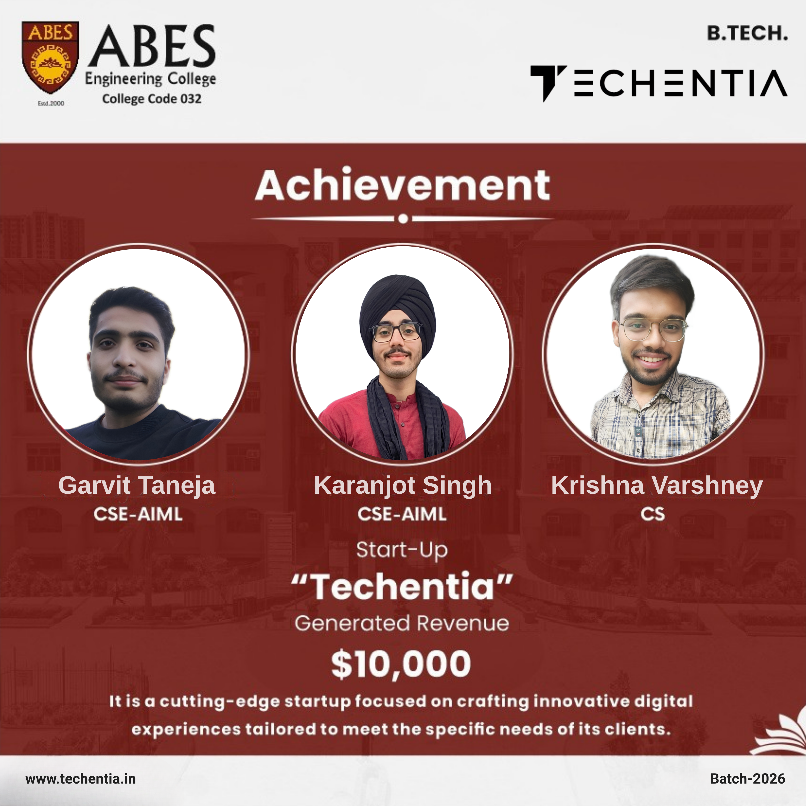 Throwback to one of our proudest milestones 🎉 and even prouder to be carrying it forward. Last year, as undergraduates from ABES Engineering College, we built Techentia, a digital innovation agency driven by pure ambition and technical grit. 🚀 Wi
