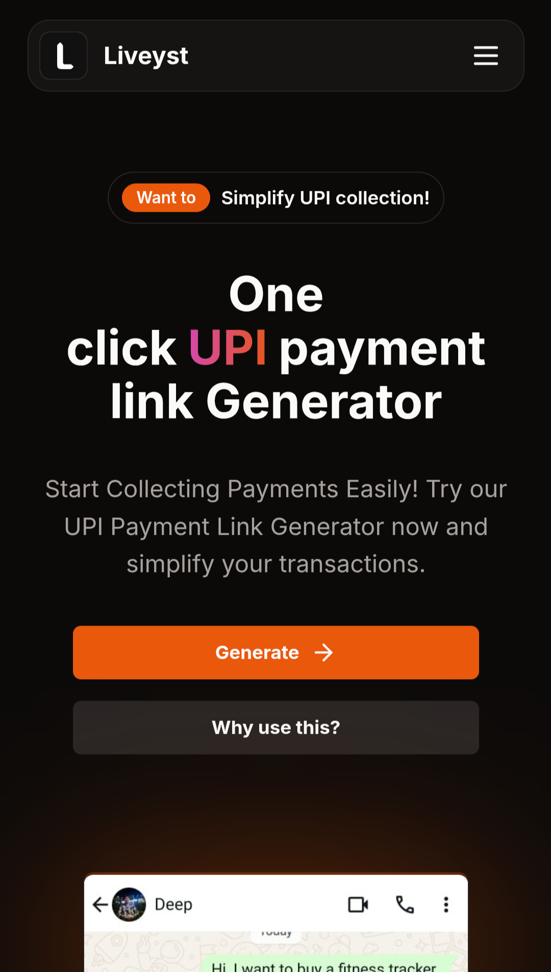 Tired of sharing your QR Code or UPI ID manually? Generate a secure UPI payment link in just a few clicks and start receiving payments instantly. Works seamlessly with Google Pay, PhonePe, Paytm, and all UPI apps. https://upi.liveyst.com/