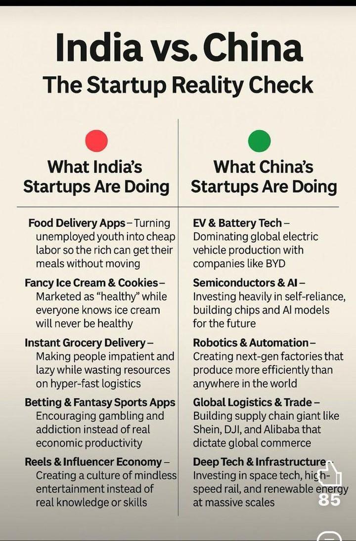 At Startup Mahakumbh, Piyush Goyal ji shared the viral "India vs China: Startup Reality" image, which truly makes one reflect. But the real reality is that India already has powerful startups in sectors like EVs, semiconductors, robotics, and AI—we j