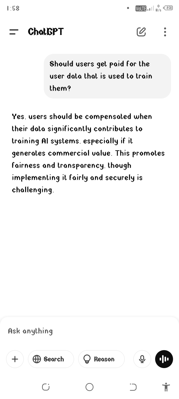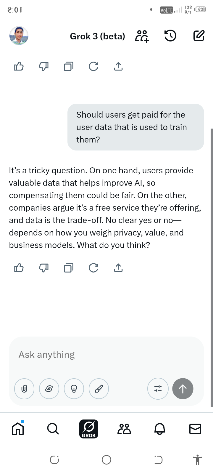 A Question to ChatGPT & Grok. Should users get paid for the user data that is used to train them?