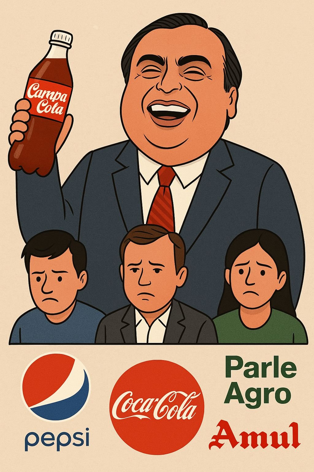 "Campa Cola: The Desi Challenger Taking on Coke & Pepsi!" Reliance Industries has shaken up Indiaโs cola market by reviving Campa Cola, once a nostalgic favorite, now a powerful competitor to Coca-Cola and Pepsi. Hereโs how itโs making waves: โ Dis