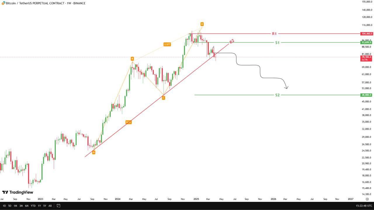 #BTCUSDT UPDATE As expected, the price managed to break the R2 resistance and is moving towards the 2 support. It seems that the price is ready for bearish situations.