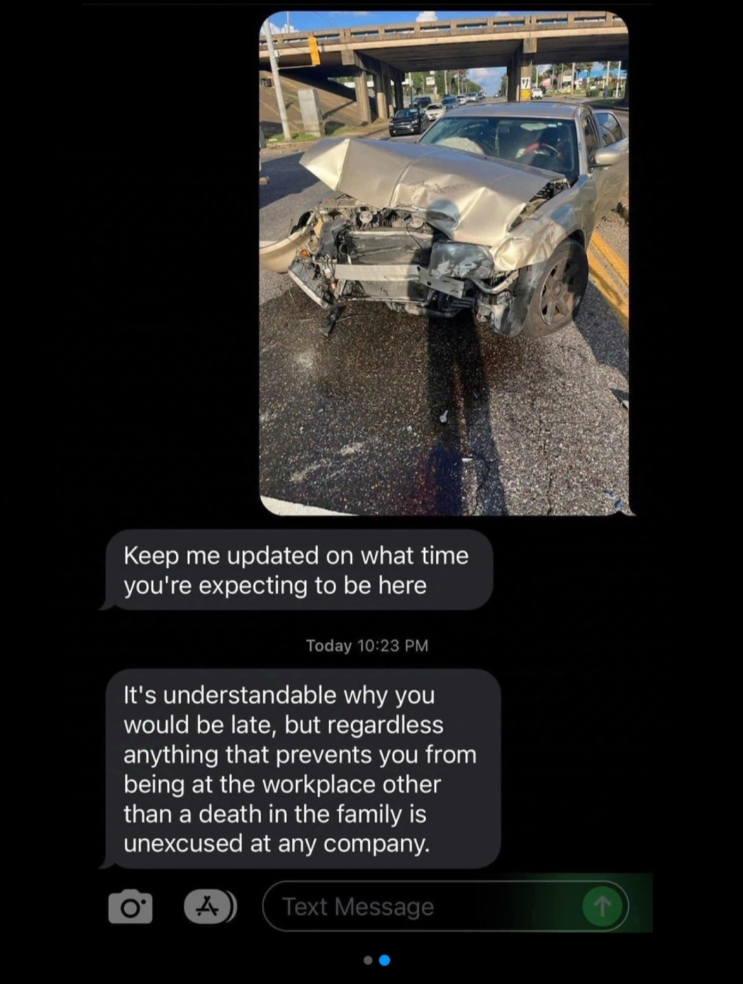 Car crash? Doesn't matter—be at work or you're out? A viral exchange between an employee and their manager has shocked social media. After the employee was involved in a severe car accident, the manager showed no concern, instead demanding updates