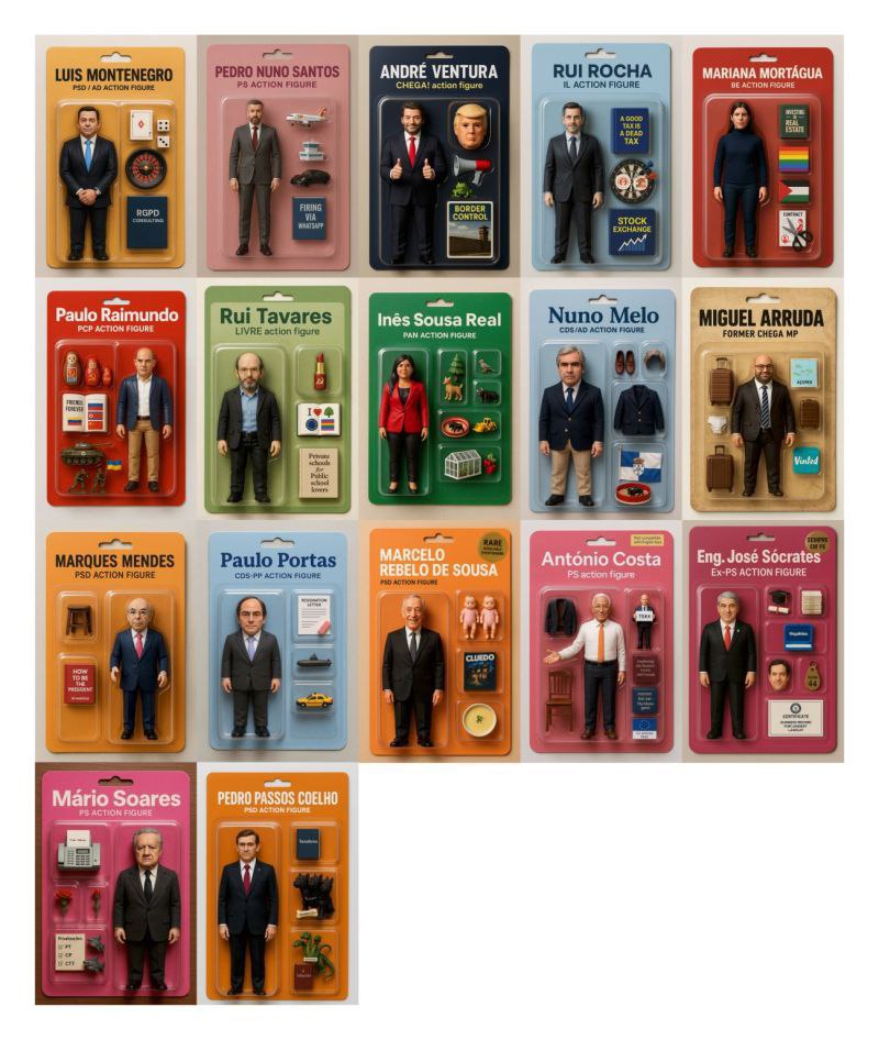 People are creating action figures with ChatGPT. Here's how to do it: → Go to ChatGPT-4o → Upload a close image of a person. Then copy-paste this prompt: "Create image. Create a toy of the person in the photo. Let it be an action figure. Next to the figure, there should be the toy’s equipment, each in its individual blisters. 1) a book called “Tecnoforma”. 2) A 3-headed dog with a tag that says “Troika” and a bone at its feet with word “austerity” written on it. 3) a three-headed Hydra with a tag called “Geringonça”. 4) a book titled “D. Sebastião”. Don’t repeat the equipment under any circumstances. The card holding the blister should be a strong orange. Also, on top of the box, write ‘Pedro Passos Coelho’ and underneath it, ‘PSD action figure’. The figure and equipment must all be inside blisters. Visualize this in a realistic way."