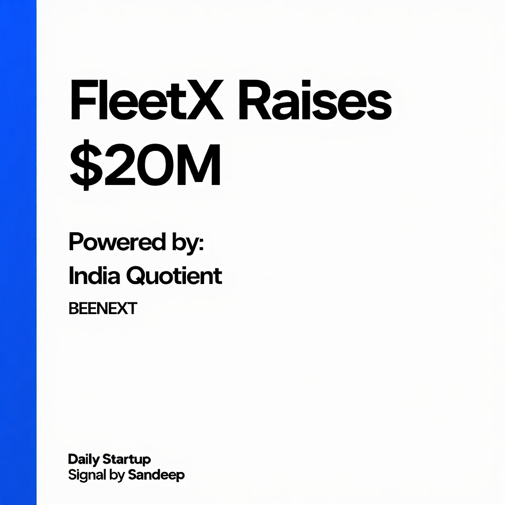 ๐จ FleetX raises $20M Series B from India Quotient & BEENEXT ๐ง Why it matters: Logistics SaaS is getting real love from VCs as Indiaโs supply chain digitization speeds up. ๐ Quick Insight: If you're building anything in AI + ops optimization โ th