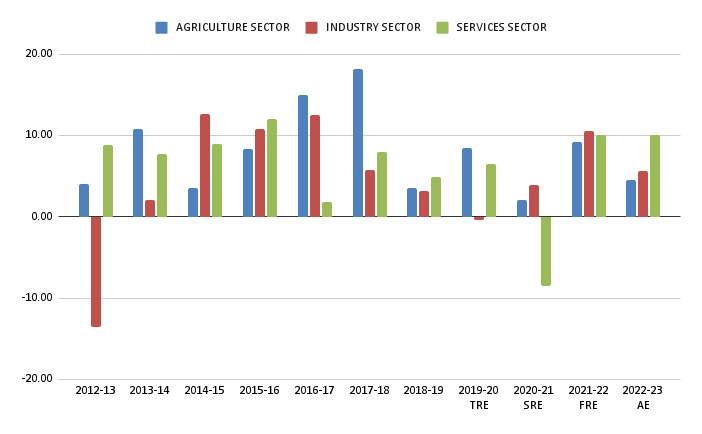 I am going through socio economic survey report of andhra pradesh 2023 and found few stats that i want everyone to look at % change in Andhra Pradesh's performance across various sectors compared to the previous year. src: socio-economic survey repor