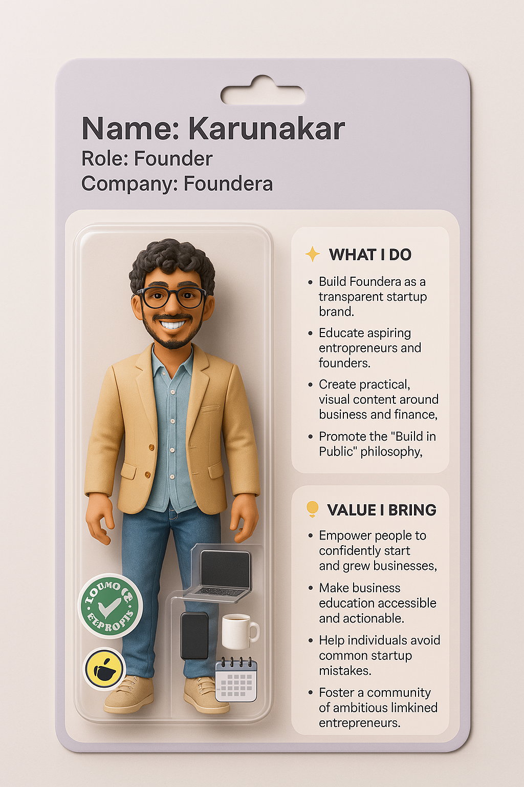 ๐ง If Foundera came in a box, hereโs what the back would say (because brands should speak human): Not a startup school. Not a VC firm. Just a bold idea: Make India the #1 startup nation. We simplify business. We teach what we learn. We build in public. ๐ Content that educates ๐ Frameworks that simplify ๐ค A community that builds together Weโre not here to sell dreams. Weโre here to build founders. The Foundera way: Honest. Practical. Indian to the core. ๐ From zero to builders โ one step, one story, one startup at a time. What would your packaging say? #Foundera #BuildInPublic #StartupIndia #BusinessMadeSimple #FromDreamToBuild I am Rebuilding FounderBite as Foundera and this time with #consistency