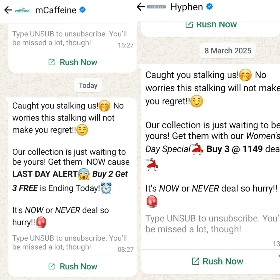 Are We Really Innovating, or Just Copy-Pasting? This morning, I stumbled upon the marketing messages of two competing brands—Mcaffeine and Hyphen—on WhatsApp. And guess what? ❗They were practically identical👯♀️. Who copied whom? That’s not the r