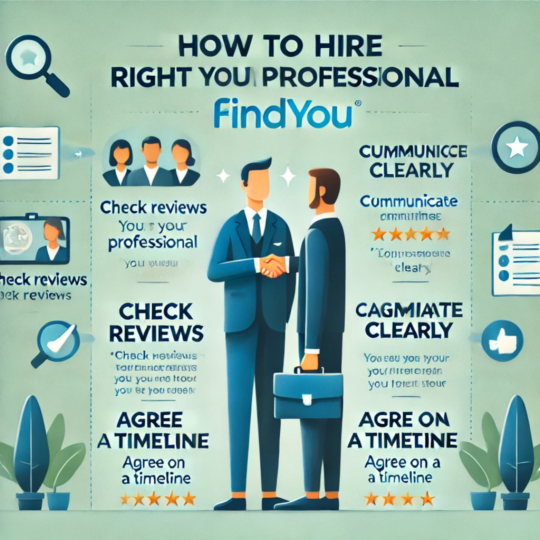 ⨠Looking to hire a professional? Hereās how to ensure you get the best service through FindYou: 1ļøā£ Check their reviews 2ļøā£ Communicate your needs clearly 3ļøā£ Agree on a timeline Find the right fit for your project today! #HiringTips #ClientAdvice