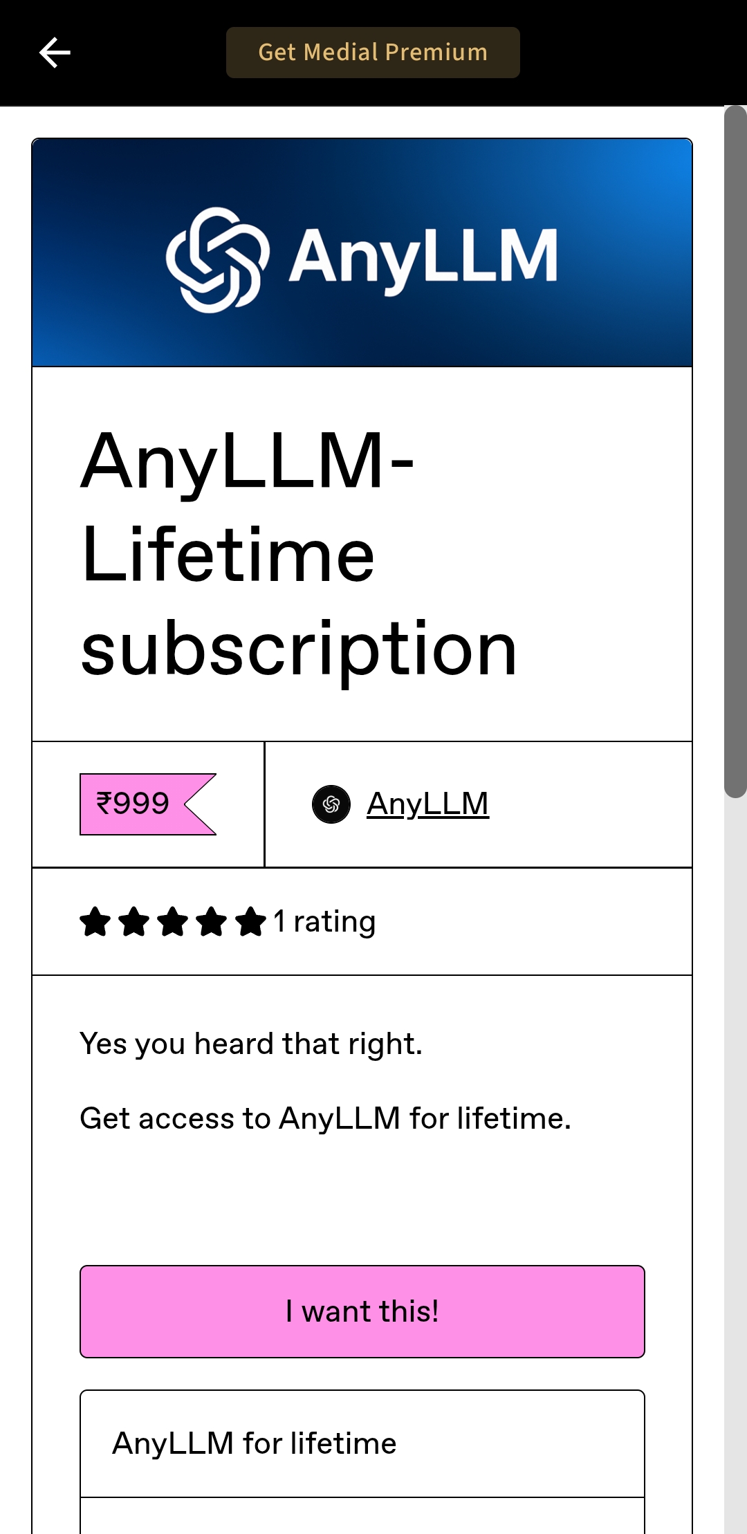 for the last 24 hrs. AnyLLM lifetime subscription for just 999. Link in comments below Introducing AnyLLM ๐ AnyLLM is your destination to over 15+ llms including Llama from Meta, DeepSeek, Qwen from Alibaba and Google. How is anyllm different? G