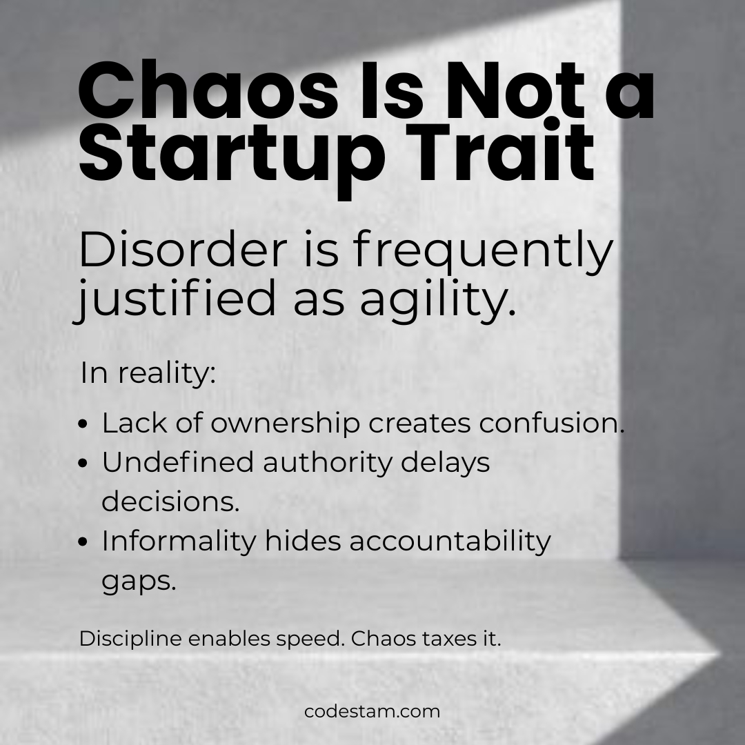 Startups donโt fail because of structure. They fail because of chaos disguised as speed. Clear ownership. Defined authority. Simple discipline. Thatโs how real agility is built. . . . . #StartupLeadership #ExecutionMatters #OperationalExcellence #F
