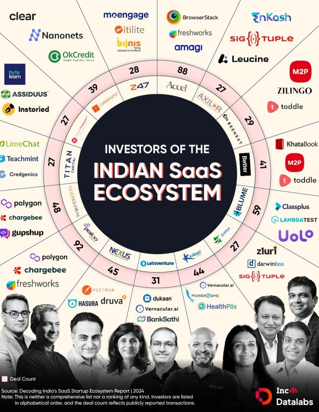 Key investors shaping the Indian SaaS ecosystem in 2024! 🚀 This visual showcases top investors and the groundbreaking startups they support, highlighting the vibrancy and growth of India's SaaS industry. #IndianSaaS #Startups #Investors #Innovation