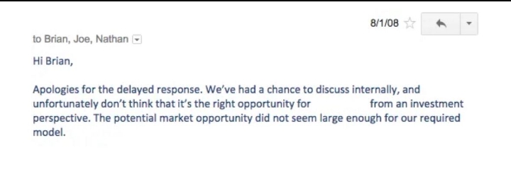 In 2008, Airbnb tried raising $150K at a $1.5M valuation. But a VC rejected them because “the market is too small”. Today, Airbnb is worth $80 billion. The greatest founders expand their market.