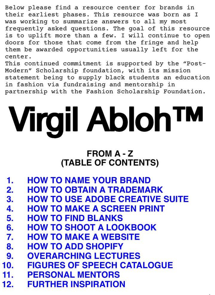 Virgil Ablohโs โFree Gameโ a year before passing away, Virgil dropped a free step-by-step guide to building a brand: