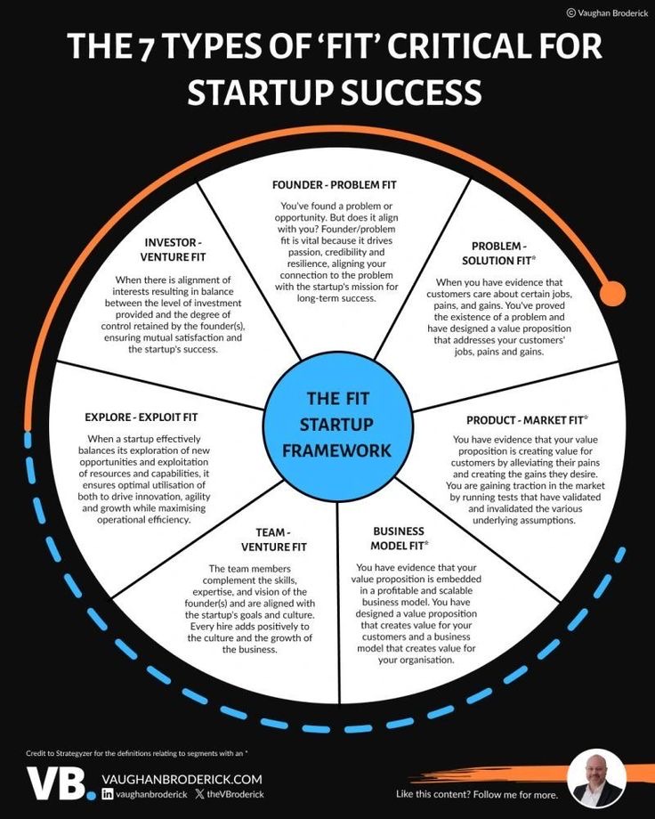 This framework hit hard. So many times we obsess over just product-market fit, but there are 6 other “fits” that matter just as much when you’re building a startup. Especially Founder-Problem Fit - if you're not truly aligned with the problem, it's hard to stay resilient when things get tough. Worth reflecting on where you stand in each of these areas. Helps to identify gaps early before scaling.