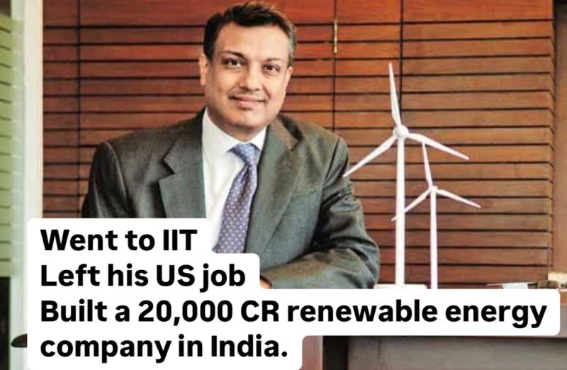 Went to IIT, left his US job and built a 20,000 CR renewable energy company in India. 1. After completing his Civil Engineering from IIT Delhi and an MBA from IIM Calcutta, Sumant Sinha worked with Tata Administrative Services as a management consul