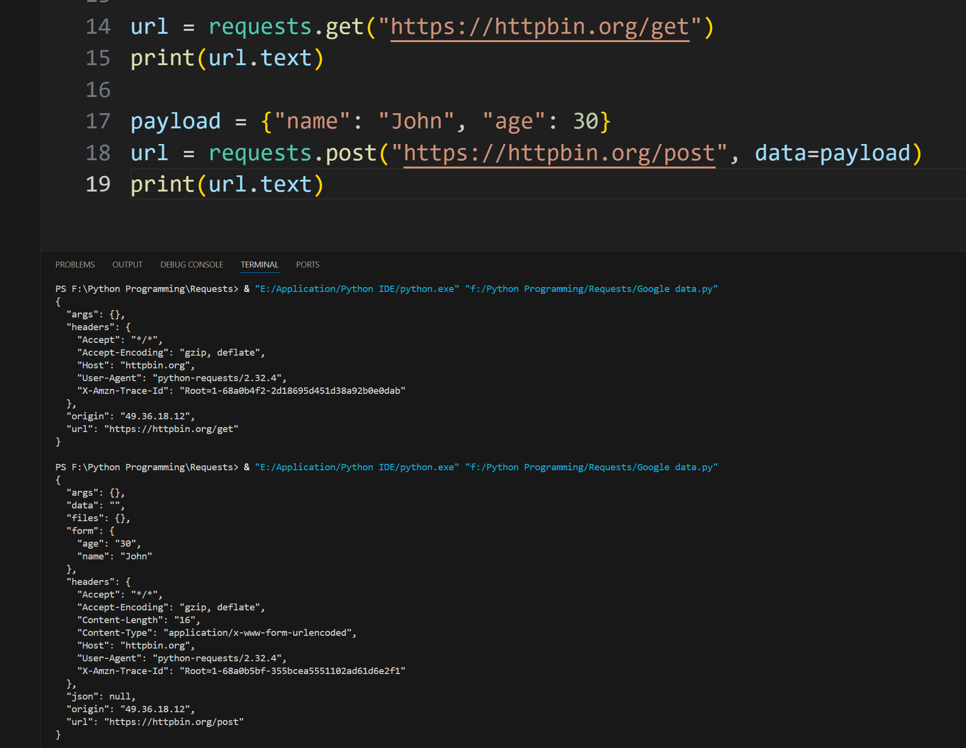 Day 20 of learning python as a beginner. Topic: HTTPS requests. HTTPS is a set of rules that is used to communicate with a website, everytime when a website or form is submit the computer sends an https request to the server which replies with an h