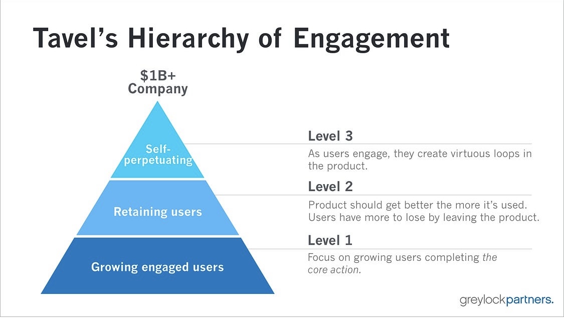 Know it quick: Tavel’s Hierarchy of Engagement - The model for building $1B+ companies. > Start with Level 1: Get users to complete the core action > Move to Level 2: Make the product better with use- users stay because they have more to lose > Reach Level 3: Create self-perpetuating loops where user activity drives more value for everyone 📈This is how the strongest product-led companies grow! Explains how truly sticky consumer products evolve over time. > Phase 1: Single-player mode - it has to be useful alone > Phase 2: Network effects - more users make it better > Phase 3: Ecosystem growth - users create content, add value
