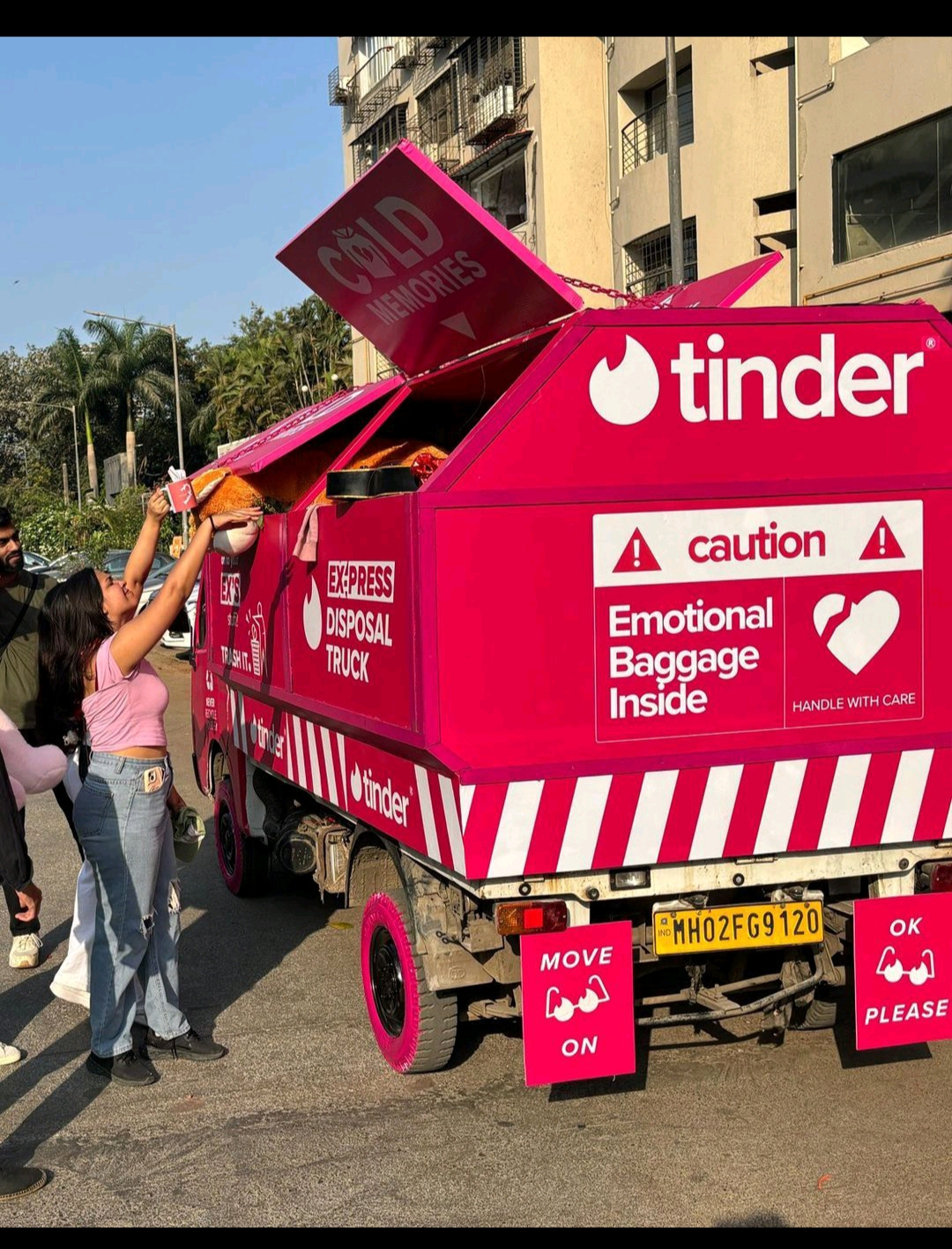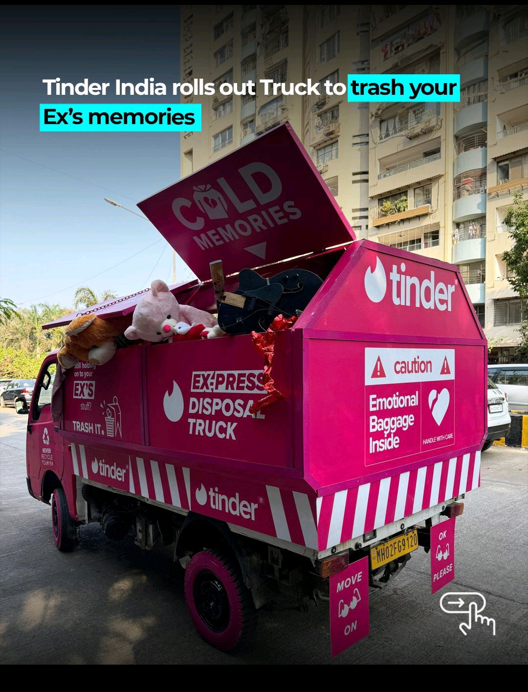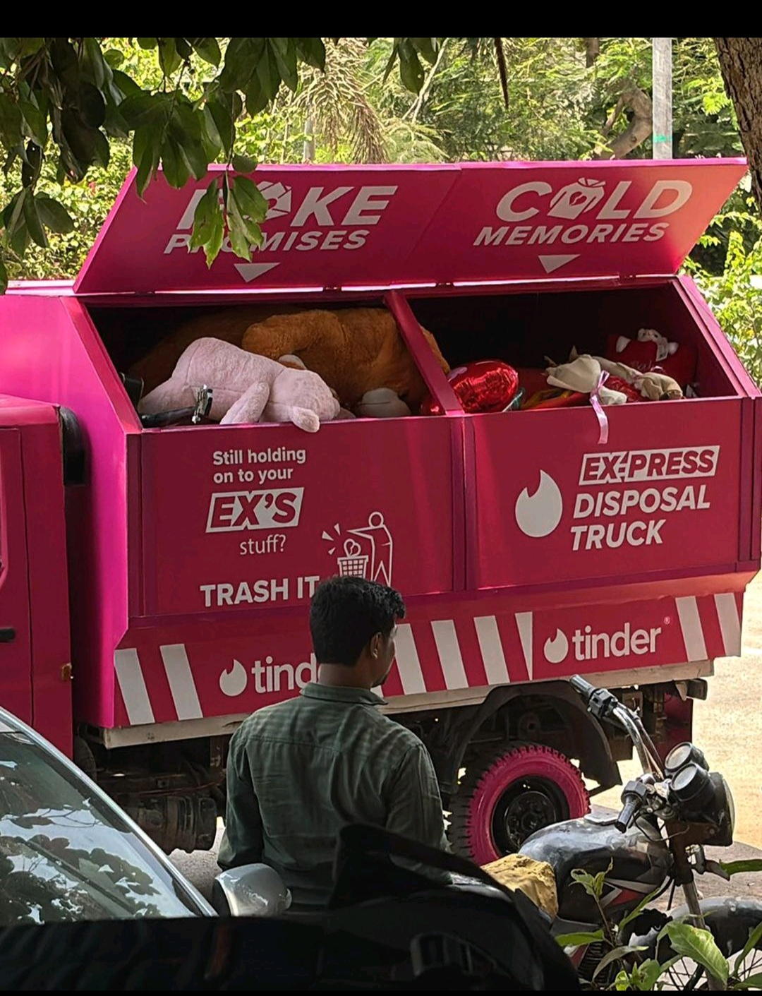 "Swipe Left on Your Baggage?" 🔥 Was NOT ready for this today… Tinder just turned a garbage truck into an Emotional Baggage Disposal Unit. Yes, an actual truck rolling through the street inviting people to dump their ex’s gifts, old memories, and all those fake promises. Because hey, if you’re gonna move on… might as well do it with dramatic flair. Savage marketing. Stylish closure. Absolute genius.