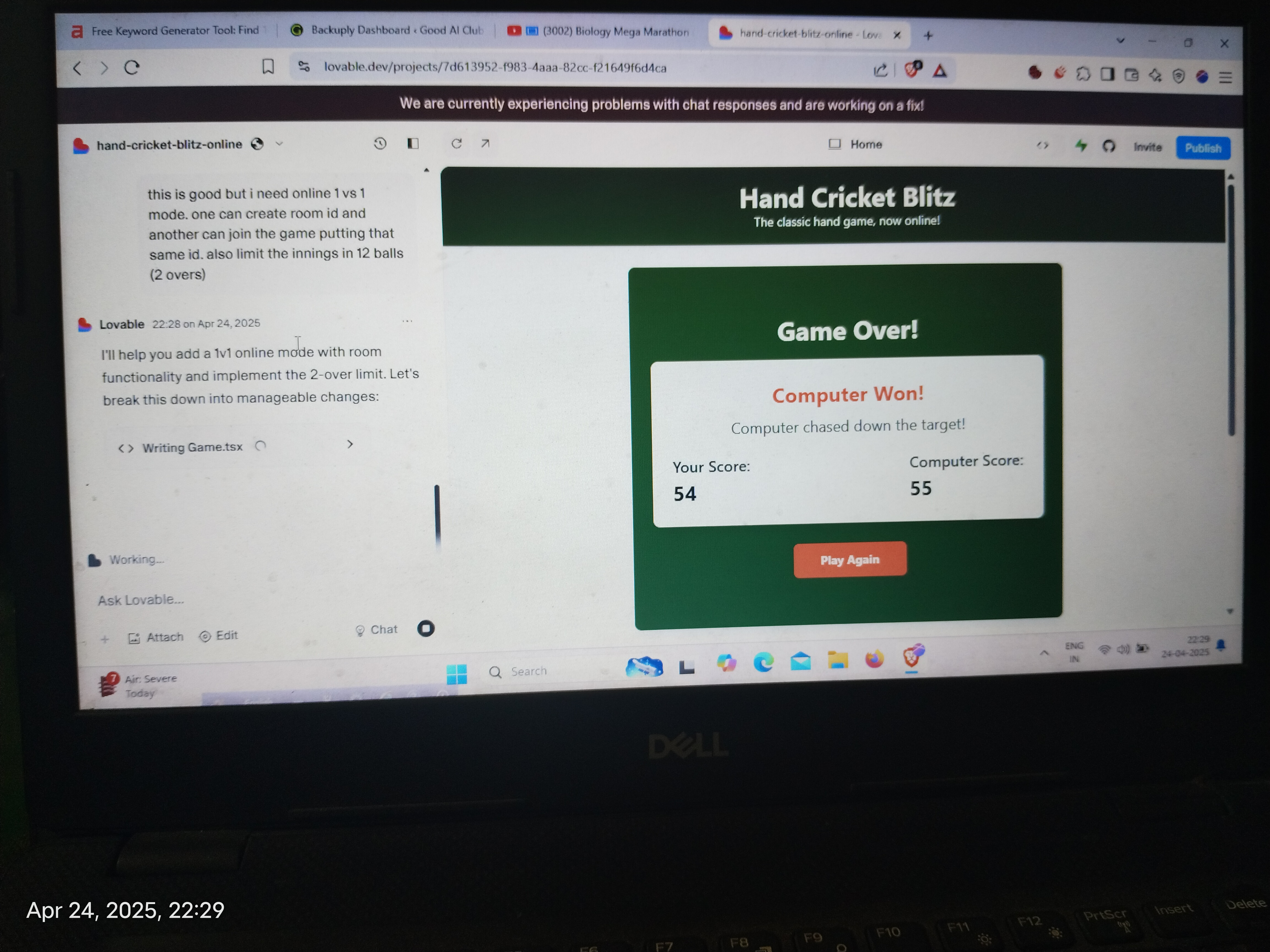 I tried creating a Hand Cricket game using Lovable AI. This is fun 😌