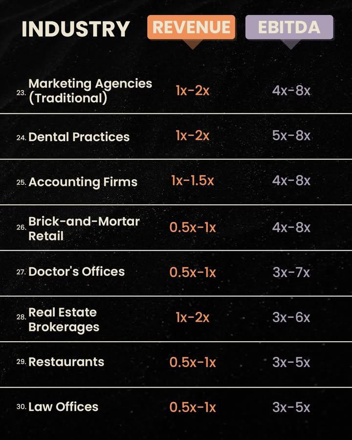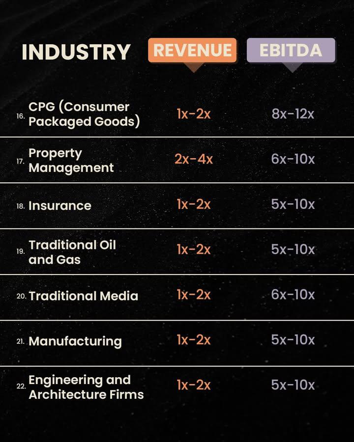 The biggest payday for business owners usually comes when they sell their business. But not every business that sells hits a jackpot —some industries resell for next to nothing. That’s why I’ve curated this list: to reveal which types of businesse