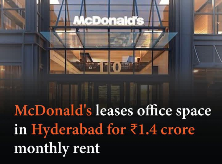 McDonald’s paying ₹1.4 crore/month for office space in Hyderabad 😳 The real estate market is officially supersized. 🍔📊 What’s cooking in Hyderabad’s commercial scene?