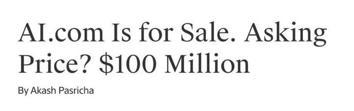 Someone purchased the "AI dot com" domain in 1993 for $65, right now he’s selling that same domain for $100m That’s a 153,846,054% return, or 1,538,461x his initial investment