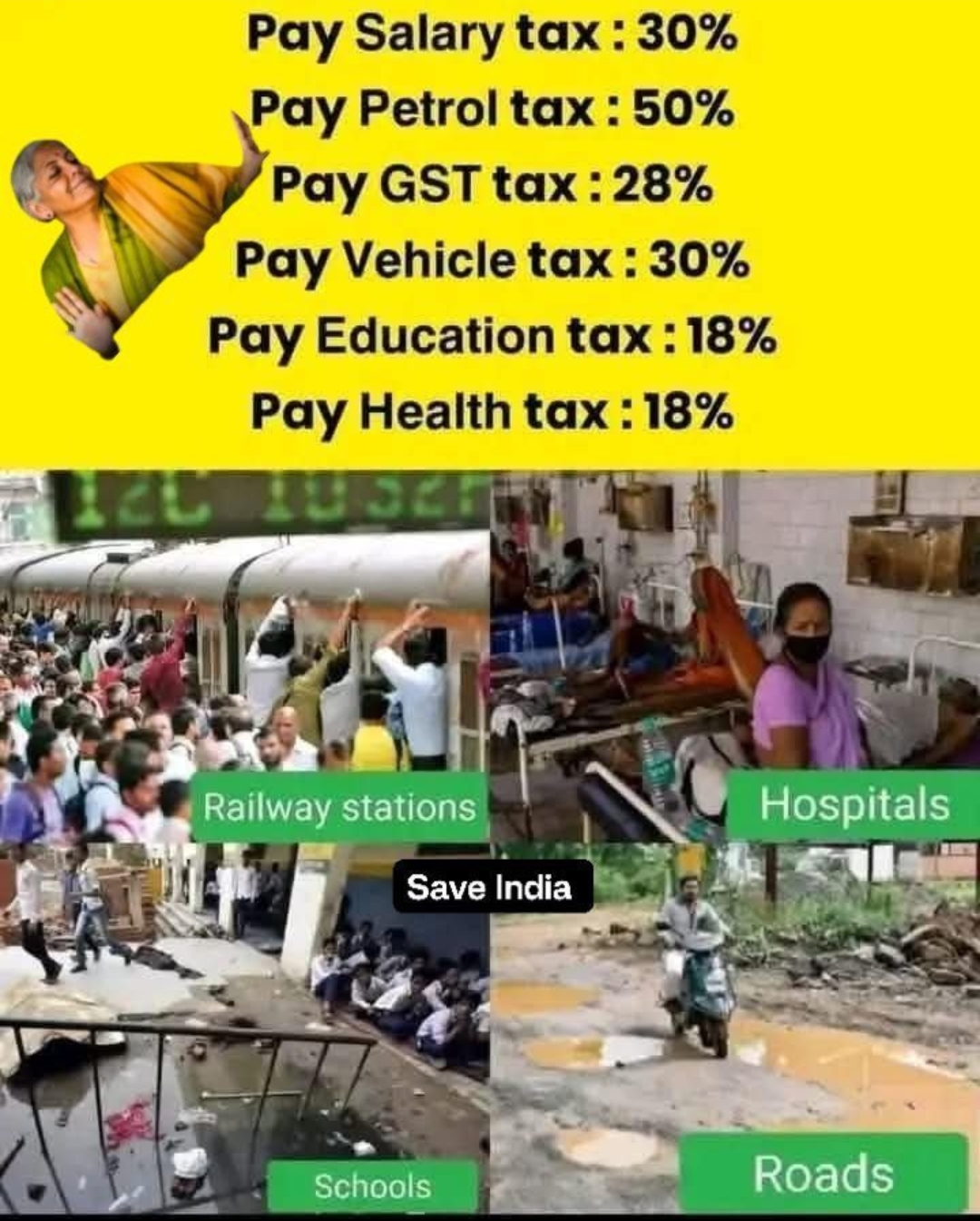 Our government focusing on adani & ambani ( corruption & election, MLA buying ) average public busy in Hindu muslim tv show (technology, education, science, infrastructure development all in dustbin ) what we get on turn ??? As citizens