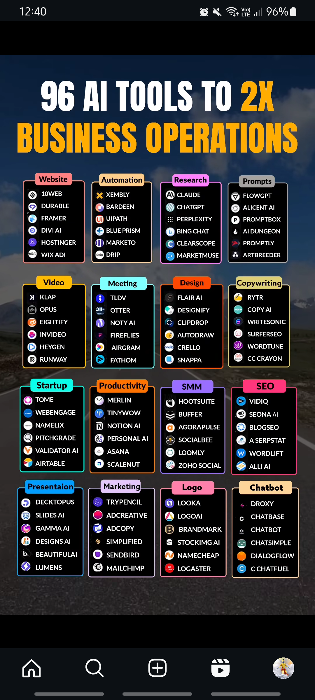 96 AI Tools to 2x your Business Operations. 🚀🔥
