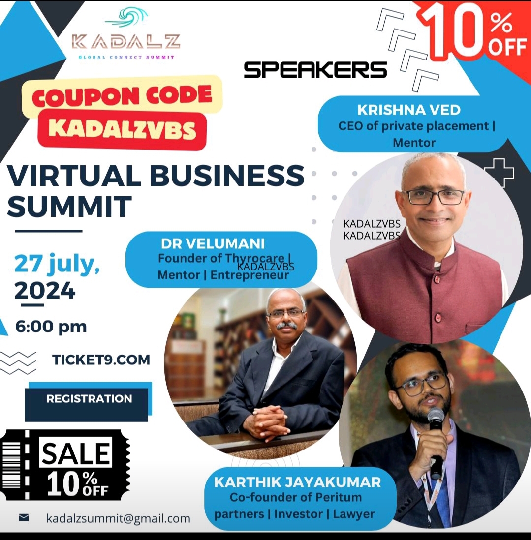 Hey guys is anyone looking for investors and fundraising and mentorship, or guide on ideation to implementation, the virtual event with Dr velumani and Krishnaved and karthik jayakumar, are tye guest you can clear your doubts and also have Q&A setio