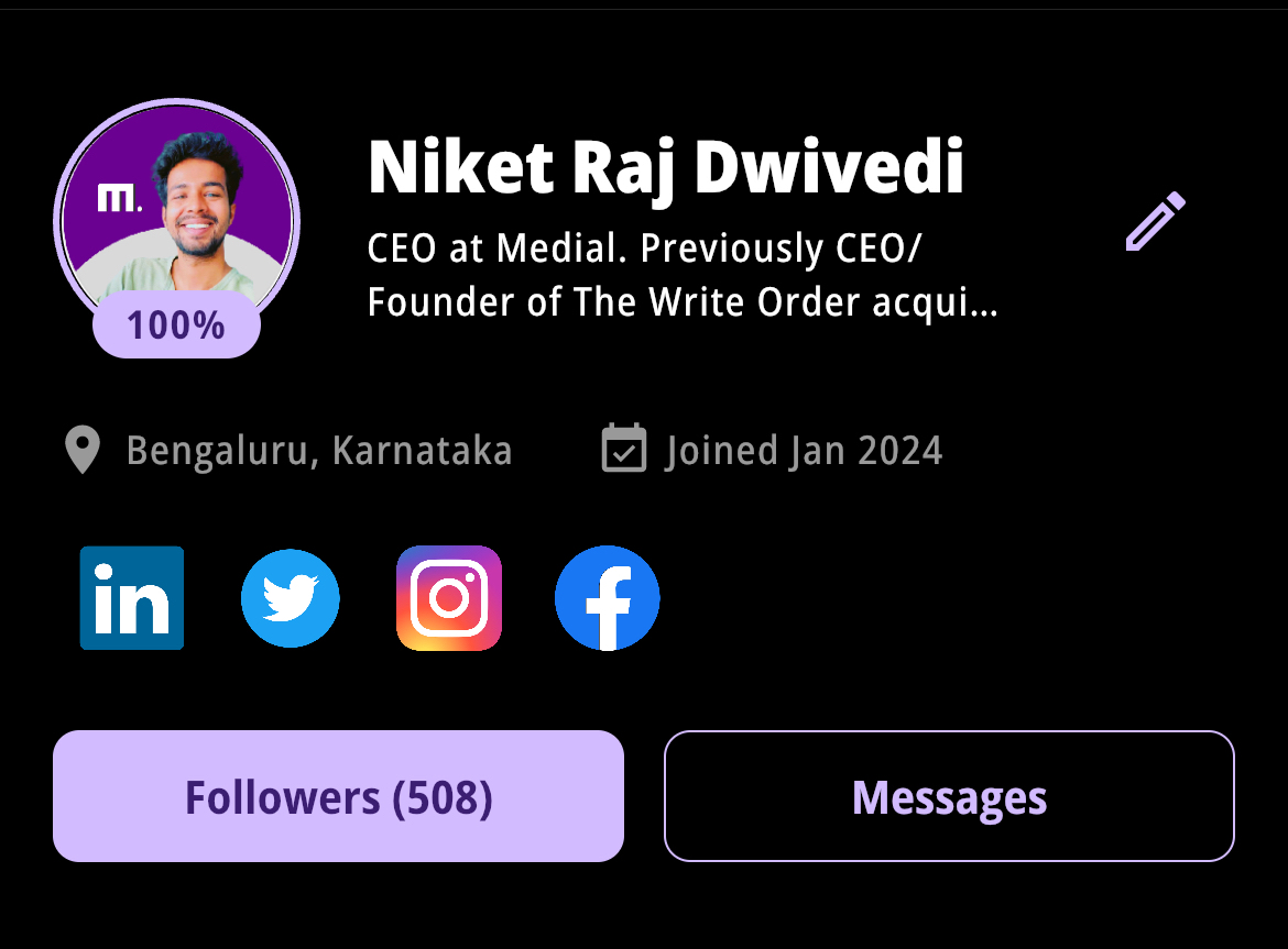 Canโt wait to introduce user discovery on Medial. This will enable everyone on the platform to grow their network multi-fold! Thank you to all 500 of you who decided to follow me. We are also seeing new creators gaining followers fast ๐ฏโค๏ธ๐๐ฅ