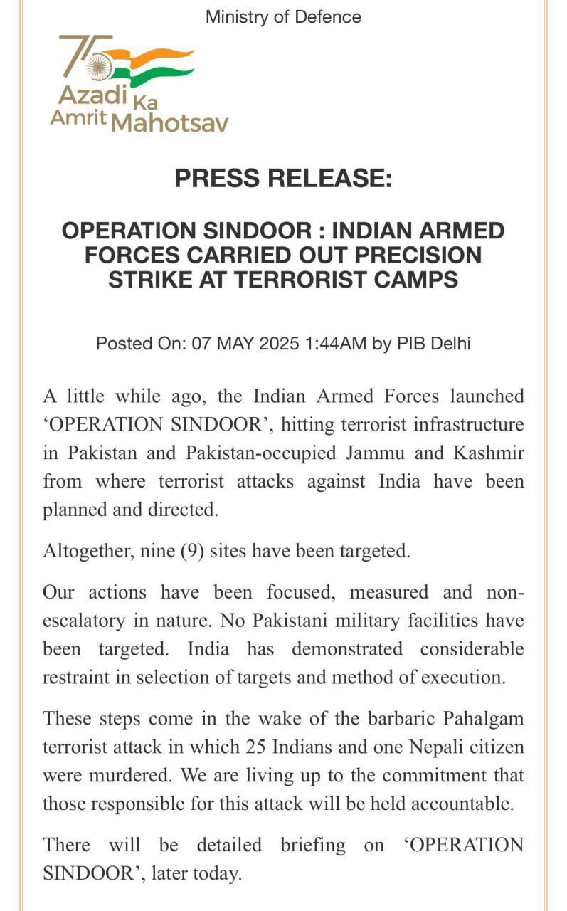 Indian Armed Forces Carried Out Precision Strike At Terrorist Camps.