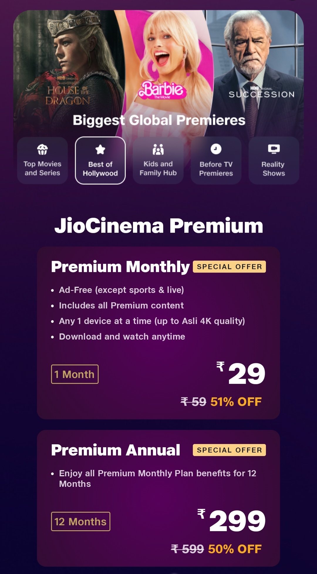 Jio new strategy to kill all top OTT's in india. Officially JioCinema is the cheapest subscription with international content. At the cost of ₹29/month just to compare Netflix basic plan is around ₹145/month Amazon Prime is around ₹299/month Ul