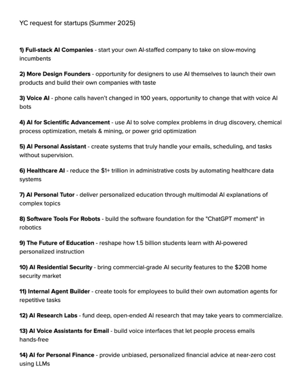YC Just dropped Requests for Startups. (Summer 25 - AI Agents) 🔥 If anyone doesn't know It's a tradition at Y Combinator (YC) where they share ideas for startups that they would particularly like to see founders work on. The ideas on the RFS list