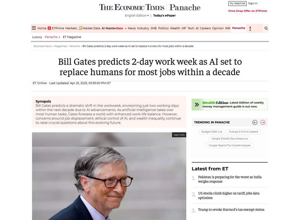 Bill Gates says 2 day Work Week as AI progress meanwhile Infosys Founder: work on Sundays too.