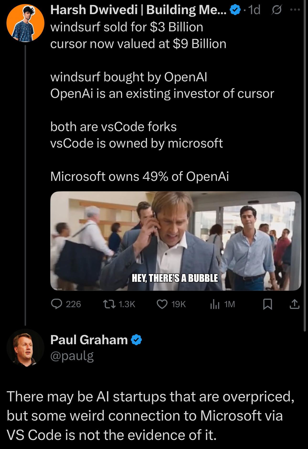 This reached too far. I was not very serious while writing this tweet and it was partly satire. But one thing for sure is that some AI startups might be overvalued which happens in any booming sector and it’s totally fine.