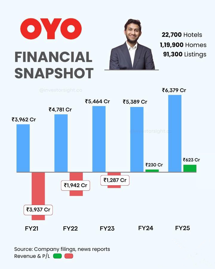 Oyo, led by Ritesh Agarwal, is now the most profitable Indian startup in FY25, after years of heavy losses. The company is expanding globally and focusing on sustainable growth. Its postponed 2022 IPO may get a fresh push as profits rise.