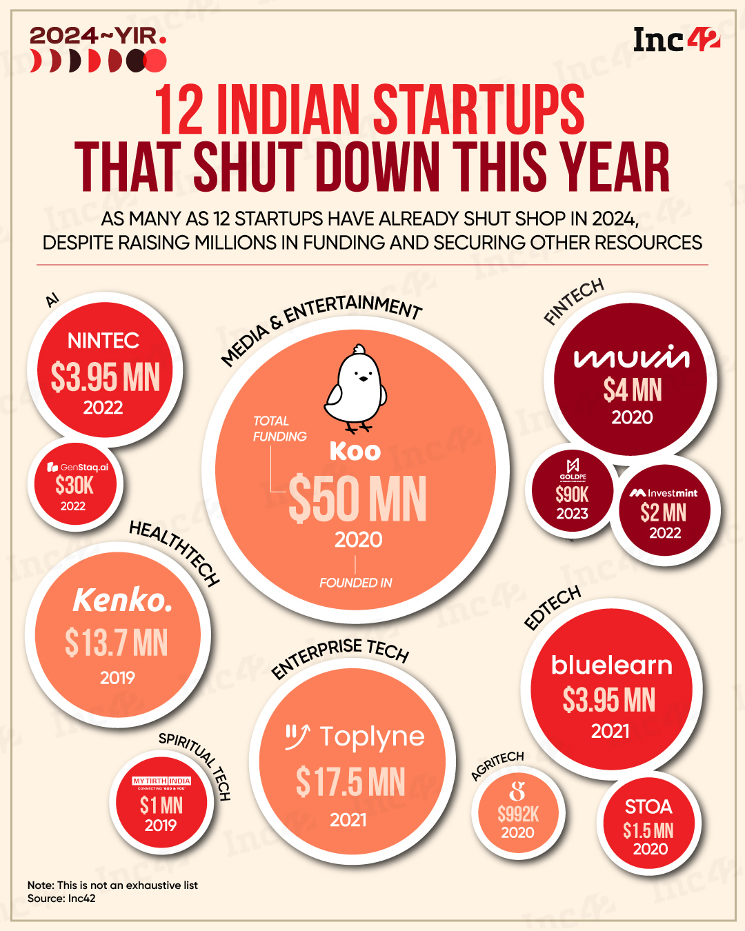 12 Indian Startups That Shut Down in 2024 – What Went Wrong? 💔 While the startup ecosystem witnessed unicorn success, 2024 also saw the unfortunate shutdown of 12 startups, despite millions in funding. Let’s take a closer look: Startups That Calle