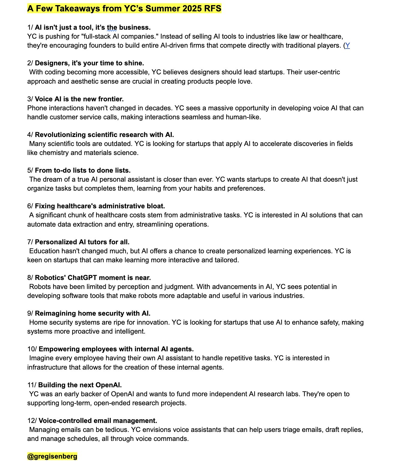 YC Just dropped Requests for Startups. (Summer 25 - AI Agents) 🔥 If anyone doesn't know It's a tradition at Y Combinator (YC) where they share ideas for startups that they would particularly like to see founders work on. The ideas on the RFS list