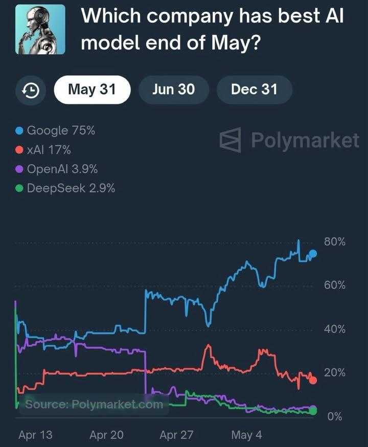 google’s the top pick to dominate ai this month, per polymarket 📈