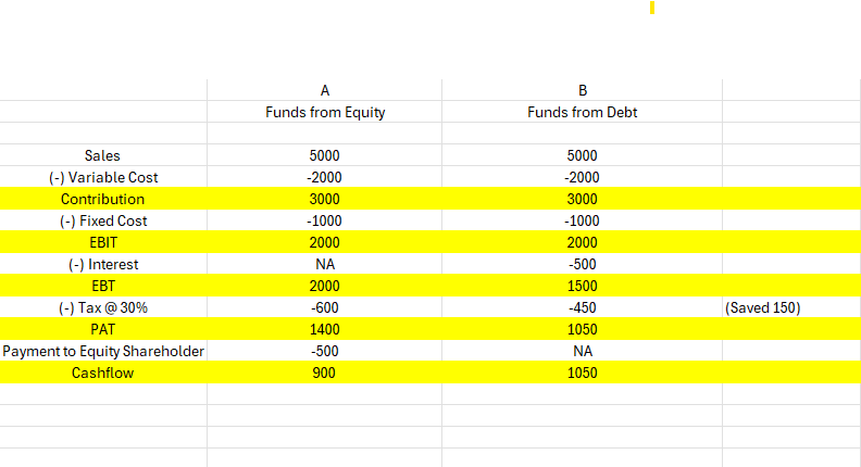 Hi everyone, I apologise for the one incorrect data. EBT for Funds from debt will be 1500
