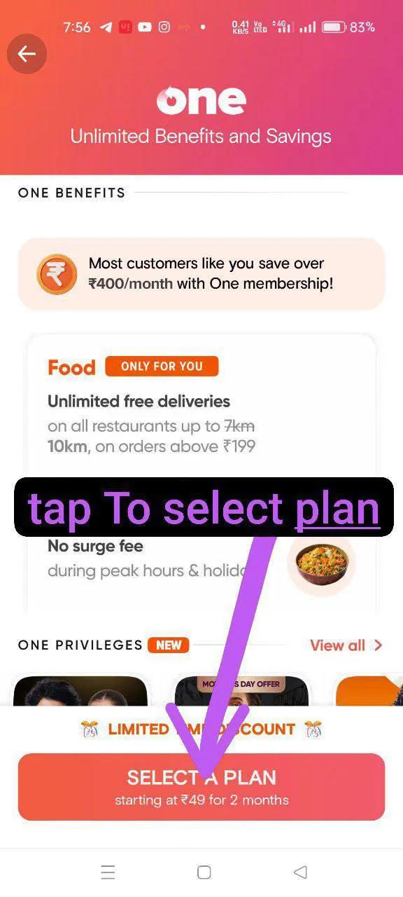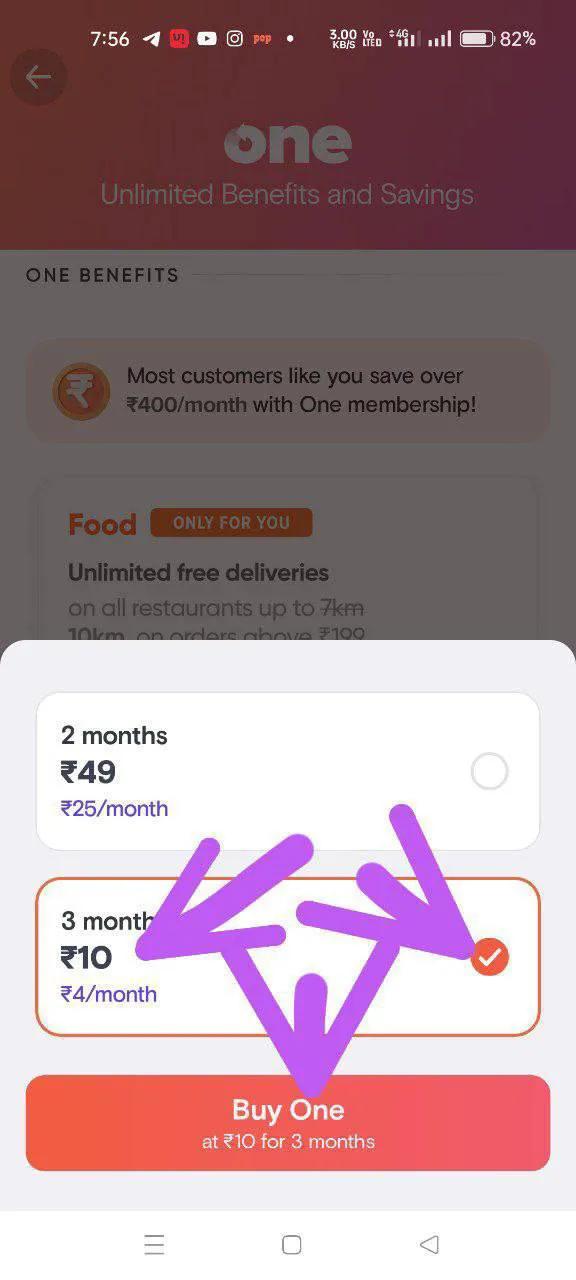 Swiggy One : Get 3 Month Swiggy One Membership At Rs.10 Open Swiggy App > Select Pin Code > 180005 Then Goto Menu > Swiggy One > Select Plan > Choose Rs.10 Plan.