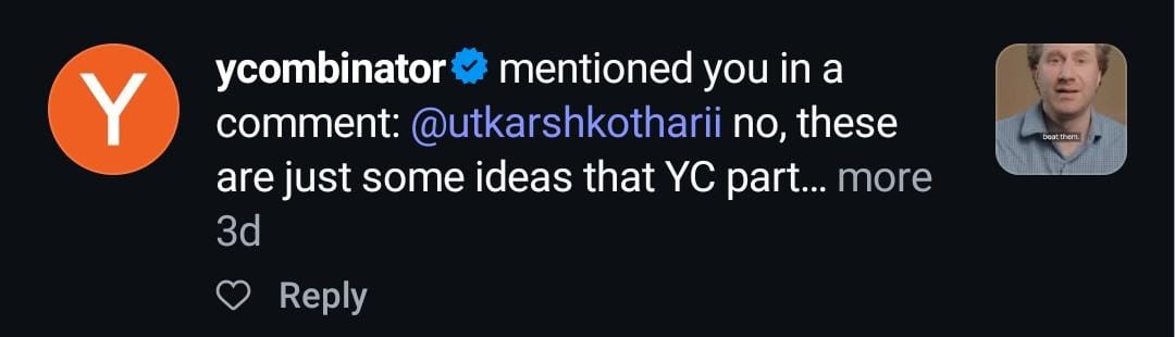 Just checked my instagram and saw ycombinator replied to my comment.๐ณ