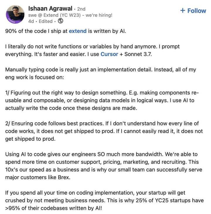 This is why 25% of YC25 startups have 95%+ of their code written by AI