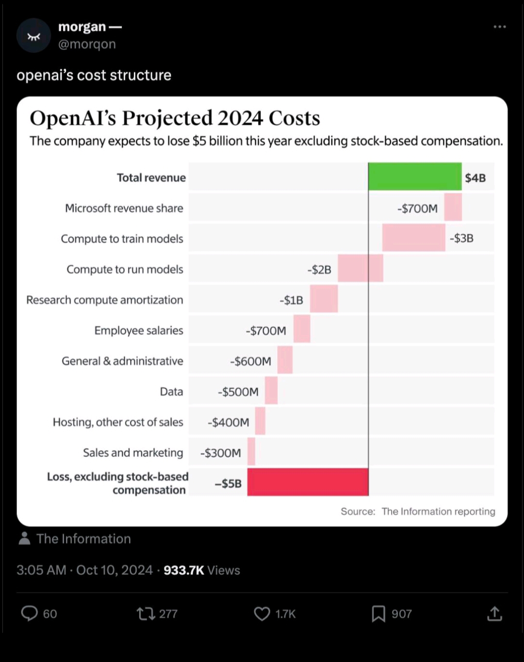 OpenAI is expected to face significant losses of approximately $44 billion before achieving profitability in 2029. A recent report from The Information sheds light on OpenAI's financial situation, revealing several key points: 1. OpenAI is unlikely
