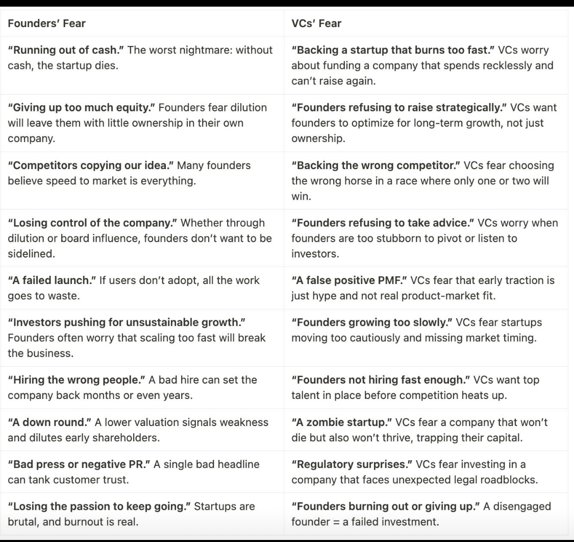 Founders fear running out of cash. VCs fear betting on the wrong dream. Same board, different chess pieces.โจSame game, totally different sleepless nights. Whoโs got the tougher job? ๐ ๐จ๐ฎ๐ง๐๐๐ซ๐ฌ lose sleep over: โจ- Giving up too much equityโจ-