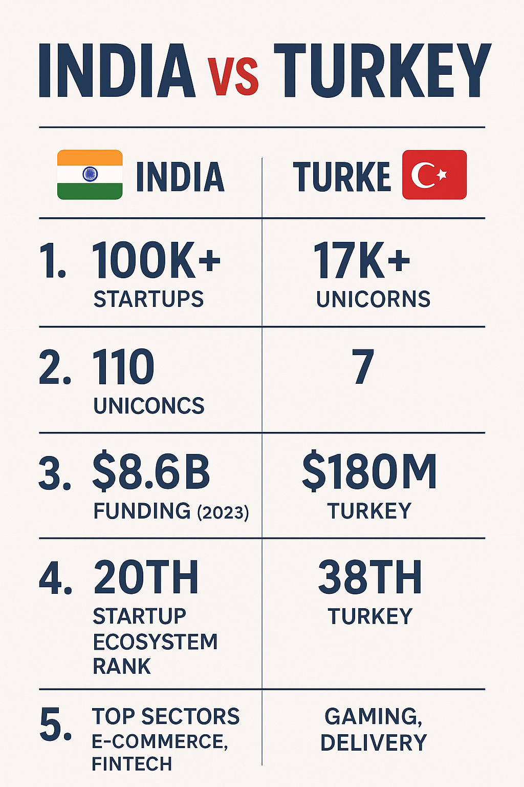 "India vs Turkey: The Startup Showdown!" From unicorns to funding firepower, here's how two rising ecosystems stack up in 2025. Who's leading the innovation race? Let's compare! #Startups #IndiaVsTurkey #InnovationBattle #Entrepreneurship #BusinessTrends #TechEcosystem #UnicornRace #StartupIndia #GlobalStartups #BoardsPartner