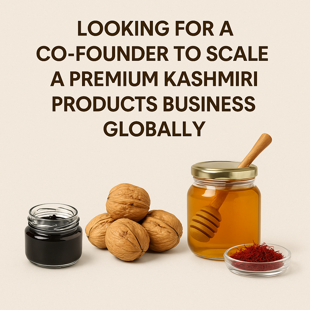 Looking for a Passionate Co-Founder to Scale a Premium Kashmiri Products Business Globally Hello everyone, I am seeking a dedicated and visionary Co-Founder to join me in expanding a fast-growing business that deals in premium Kashmiri products — Shilajit, Kashmiri Walnuts, Pure Honey, and Saffron. I am not just a trader but the manufacturer and supplier of these authentic products with years of experience in production, quality control, and local sourcing in Kashmir. Over time, I’ve built a solid foundation, reliable supply chains, and deep product knowledge. Now, it’s time to scale up, expand globally, and build a strong eCommerce presence, international exports, and brand identity. What I’m Looking For: A co-founder from outside Kashmir who shares the vision and has experience or interest in: Marketing & Branding eCommerce / Shopify / Amazon International trade / exports Business development Someone with strong networking or digital skills to help the brand grow globally.