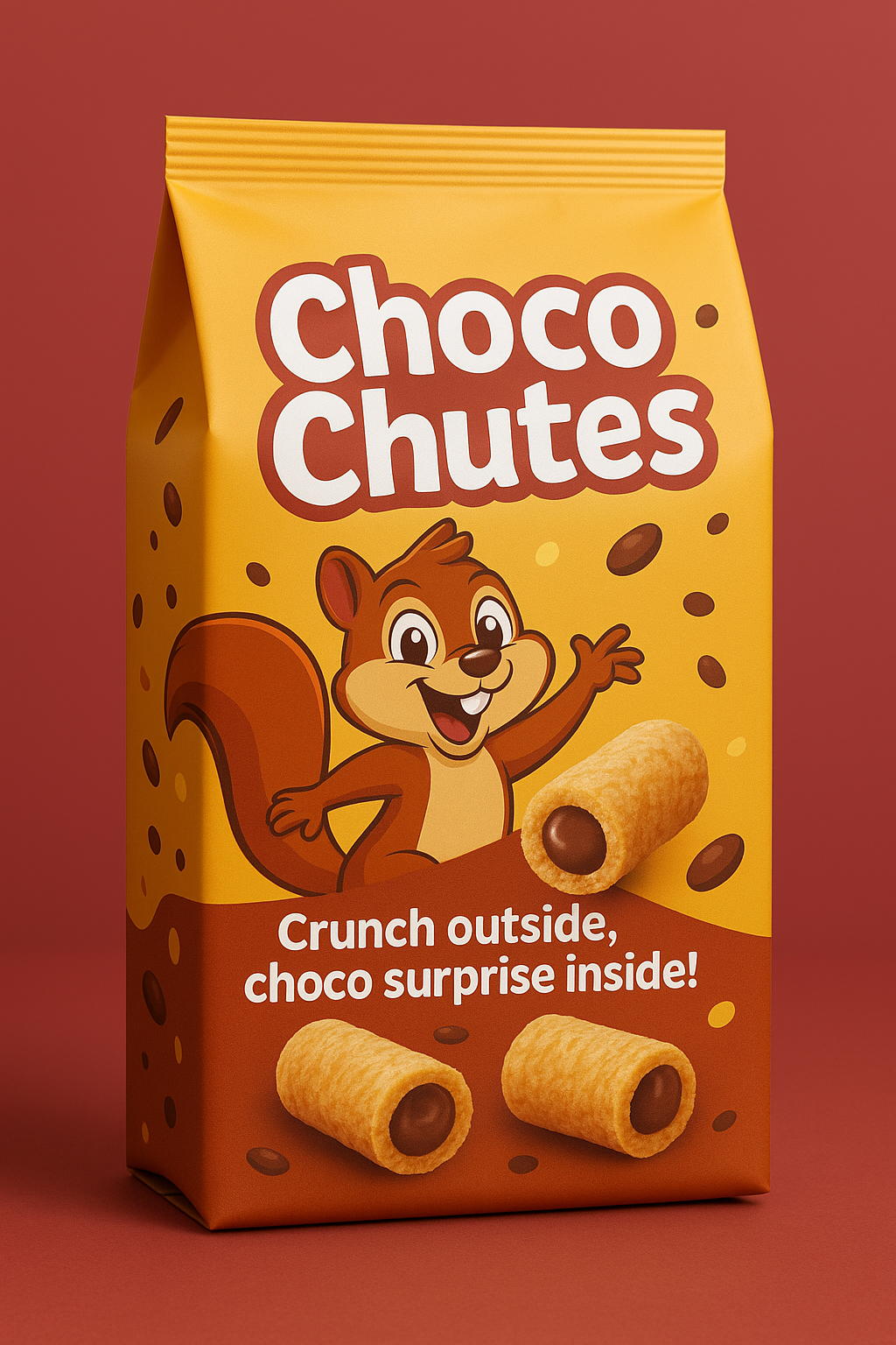 Hi, i just got an idea for a quick snack. Small small cylindrical wafer cerals filled with chocolate, having free ends. I have used chatgpt to generate the product image , also it generated the name for the product. I have other names in my mind and