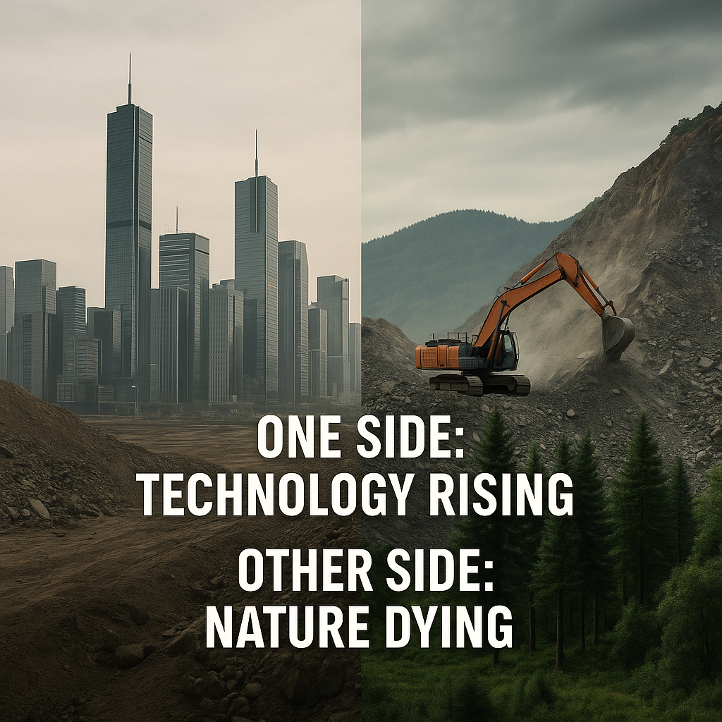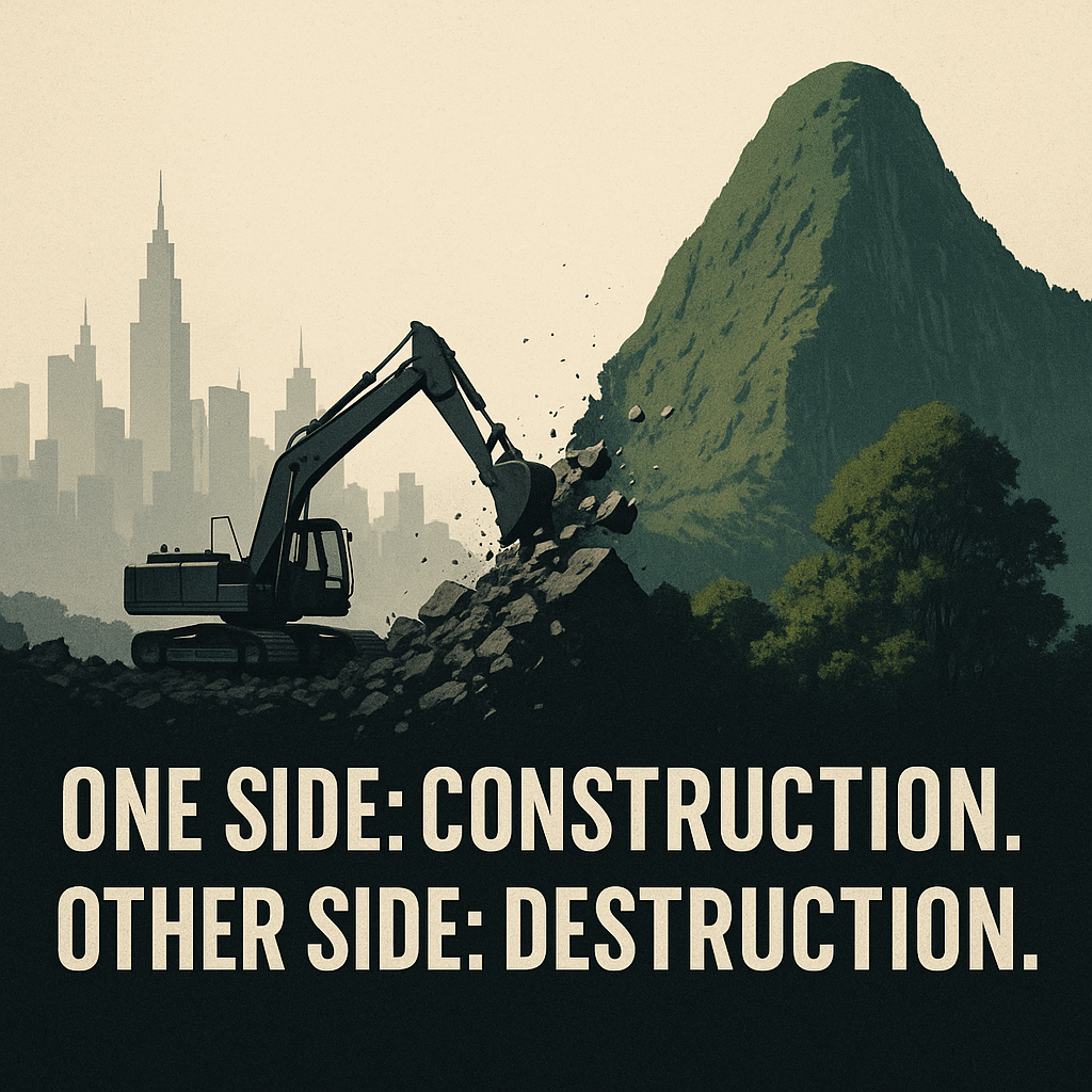 One side: Construction. Other side: Destruction. We build cities with pride, but destroy mountains without a second thought. We call it development, but whatโs actually growing? Mountains are being ground into M-sand as if theyโll rise again. But t